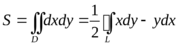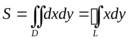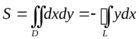в D, мы с помощью формулы Грина можем вычислить площадь через криволинейный интеграл. Подбирать функции Р(х, у) и Q(x, y) можно различными способами, но, как правило, используют самые простые: