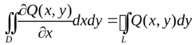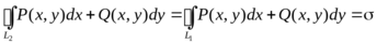 В совокупности обе эти кривые (у = y1(х) и у = y2(х)) составляют замкнутый контур L. Пусть в области D заданы непрерывные функции P(х, у) и Q(х, у), имеющие непрерывные частные производные. Рассмотрим интеграл