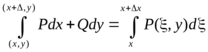 причем в качестве пути интегрирования в последнем интеграле можно взять горизонтальный отрезок, соединяющий точки М(х, у) и М1(х + Δх, у). В этом случае dy = 0, переменное у имеет постоянное значение, и мы получаем