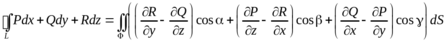 Пусть в некоторой пространственной области V*, целиком содержащей поверхность Ф, заданы непрерывно дифференцируемые функции Р = Р(х, у, z), Q = Q(х, у, z), R = R(x, у, z). Тогда имеет место формула Стокса