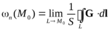 Ненулевое значение циркуляции силового поля указывает на то, что это поле производит работу при перемещении материальной точки, возвращающейся в исходное положение. В этом случае говорят о вихревом характере силового поля. Чтобы охарактеризовать, в какой степени и где поле является вихревым, поступим следующим образом. Выберем некоторый единичный вектор n, точку M0 в области определения векторного поля G. В плоскости σ, перпендикулярной вектору n и проходящей через точку М0, возьмем простой кусочно-гладкий контур L, окружающий точку М0 и ограничивающий в плоскости область с площадью S. Предел