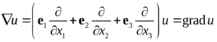 Оператор Гамильтона. Выберем в пространстве прямоугольную систему координат Ox1x2x3 с правым ортонормированным базисом e1, e2, е3. Рассмотрим символический векторный дифференциальный оператор, называемый оператором Гамильтона или оператором набла
