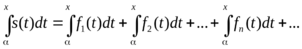 Теорема 2. Пусть имеем ряд (1) непрерывных функций мажорируемый на отрезке [а, b], и пусть s(x) есть сумма этого ряда. Тогда интеграл от s(x) в пределах от а до х, принадлежащих отрезку [а, b], равняется сумме таких же интегралов от членов данного ряда, т. е.