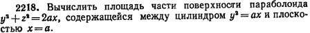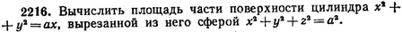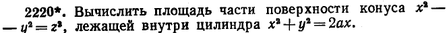 2219. Вычислить площадь части поверхности цилиндра х2 + y2 = 2ах, содержащейся между плоскостью ХОУ и конусом х2 + y2 = z2.