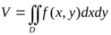 Объем V цилиндроида, ограниченного сверху непрерывной поверхностью z = f(x, у), снизу плоскостью z = 0 и с боков прямой цилиндрической поверхностью, вырезывающей на плоскости XOY область D, равен
