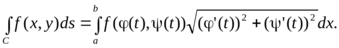 Криволинейный интеграл 1-го рода вычисляется по формуле