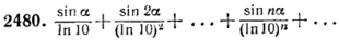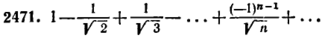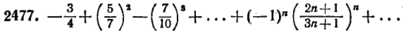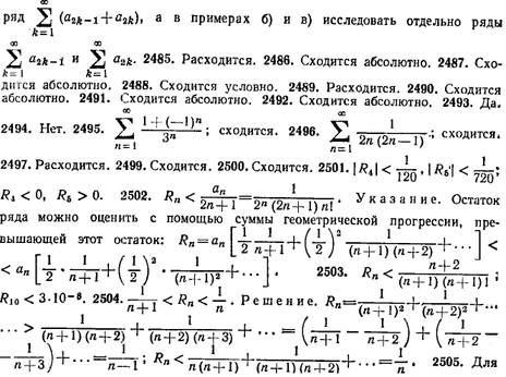 . 2470. Сходится условно. 2471. Сходится условно. 2472. Сходится абсолютно. 2473. Расходится. 2474. Сходится условно. 2475. Сходится абсолютно. 2476. Сходится условно. 2477. Сходятся абсолютно. 2478. Сходится абсолютно. 2479. Расходится. 2480. Сходится абсолютно. 2481. Сходится условно. 2482. Сходится абсолютно. 2484. а) Расходится; б) сходится абсолютно; в) расходится; г) сходится условно. Указание. В примерах а) и г) рассмотреть