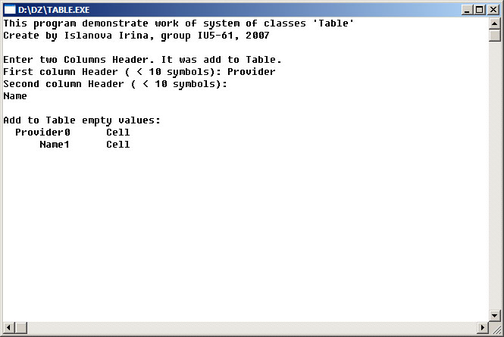 cout << "Enter two Columns Header. It was add to Table." << endl;