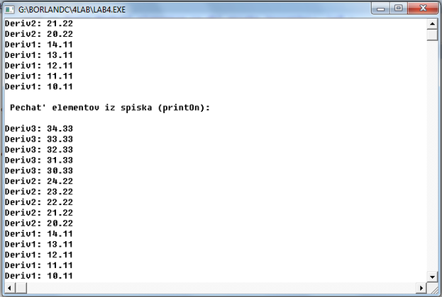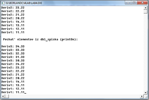 cout << "\n\n Pechat' elementov iz dbl_spiska (printOn): \n" ;