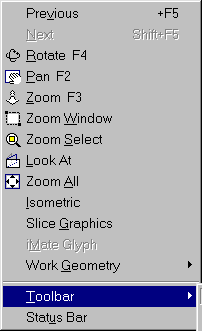Нужно отметить, что все перечисленные панели команд можно «включать» или исключать с экрана монитора с помощью падающего меню View. В этом меню есть команда Toolbar, по которой выпадает перечень всех перечисленных панелей команд (см. рис. 2.7а и 2.7б).