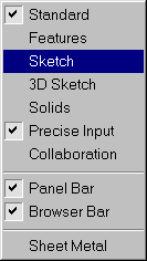 В панели команд Panel Bar (см. рис. 2.5) система предлагает тот набор команд, который требуется пользователю в данном режиме или состоянии работы. Это могут быть наборы команд для эскизирования (Sketch), построения детали (Features), создания сборочных узлов (Assembly), работы с плоскими листами (Sheet Metal), «внешними» твердыми телами (Solids), работы с проекционными видами (Drawing Management). Вы многократно убедитесь в том, что набор команд всегда будет меняться в соответствии с выбранным режимом работы или состоянием системы.