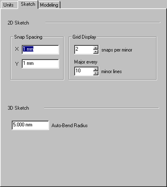 Закладка Sketch (рис. 1.4) позволяет изменять шаг размерной сетки и величину «прыжка» курсора по клеткам размерной сетки в том случае, если включен переключатель Snap to Grid.