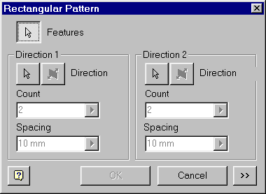 Первым компонентом этого окна, на который сразу нужно обратить внимание, является нажатая кнопка Features. . То есть система сразу предлагает указать тот существующий элемент, который следует размножить. Будьте внимательны при указании. Если у отверстия дополнительно была построена фаска или скругление, или что-то еще, то указывать нужно все атрибуты, относящиеся к данному отверстию. Учтите, что отверстие и скругление его кромки – это разные типовые конструктивные элементы. Если Вы не укажете скругление, например, то размноженные отверстия окажутся не скругленными.