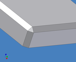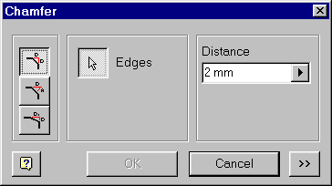 о команде вызывается диалоговое окно (рис. 21). В нем достаточно указать ребра, на которых предполагаются фаски, размер фаски, и способ задания фаски. Результат выполнения данной команды представлен на рис. 22.
