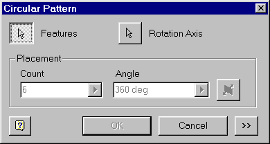 Как и в предыдущем случае сначала построим первое отверстие-оригинал но уже на круглом основании (рис. 6.5). Вызовем команду Circular Pattern. В ответ появляется диалоговое окно (рис. 6).