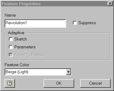 Следующая команда контекстного меню Properties позволяет просмотреть и изменить некоторые свойства уже построенной детали. Кстати, аналогичная команда есть и в режиме сборки, но там она гораздо богаче и позволяет задавать различные физические свойства детали. В нашем режиме детали эта возможность скромнее. Главное – это возможность закрасить деталь в соответствии с прилагаемым списком. Если вызвать команду Properties , то появится диалоговое окно (рис. 3.27). В поле Name можно изменить имя операции формообразования, написать его по-русски и в соответствии с логикой построения. А в поле Feature Color можно просмотреть и выбрать различные цвета закраски данного конструктивного элемента нашей детали. Таким образом, разные части одной детали можно по-разному раскрасить!