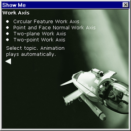 Далее достаточно щелкнуть курсором по соответствующей строке и в этом же окошке система предоставит Вам короткий учебный фильм об интересующем Вас способе построения. Этой подсказкой можно пользоваться многократно, так как с ее помощью легко вспоминается порядок указания требуемых компонентов построения. Благодаря такой системной подсказке в данном разделе мы практически не будем прибегать к иллюстрациям.