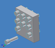 При этом Вы можете выполнить эту процедуру с разной степенью детализации. Например, Вам следует на некоторой плите, в заданные прямоугольным массивом отверстия вставить соответствующее количество шпеньков (рис. 5).