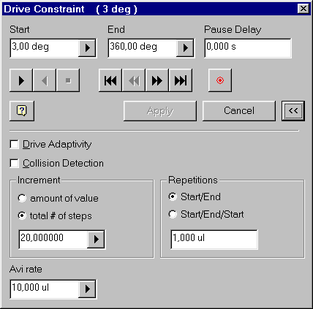 В поле Repetitions задается общее количество повторений однократных движений от стартового до конечного значения изменяемой величины.