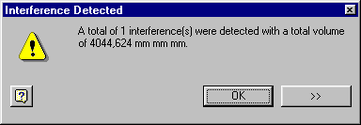 В нем следует указать пару деталей, возможное пересечение которых следует проверить. Если такое пересечение действительно имеет место, то в специальном сообщении (рис. 23) система сообщит не только о наличии пересечения, но и о его величине в единицах объема.