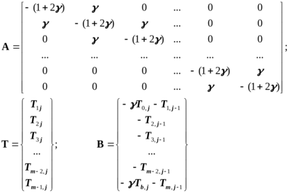| i=2 | T3,j -(1+2)T2,j +T1,j = - T2,j-1 |