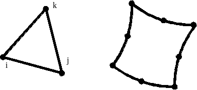 При решении двумерных задач применяют треугольные и четырехугольные как линейные, так и криволинейные элементы, толщина которых равна толщине детали: