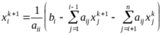 Этот процесс может быть продолжен. Для i-го уравнения будем использовать величины неизвестных xjk+1, j=1…i-1 полученные на текущей итерации, а xjk, j=i+1…n - полученные на предыдущей итерации. Тогда в общем виде формула для определения неизвестных может быть написана в виде