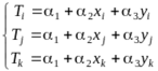 Для двумерных симплексных элементов - треугольников, интерполяционный (апроксимирующий) полином имеет вид (здесь в качестве неизвестной функции используем распределение температуры в плоской области):