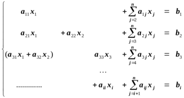 Из первого уравнения системы, положив значения неизвестных под знаком суммирования равными величинам неизвестных с предыдущей k-ой итерации