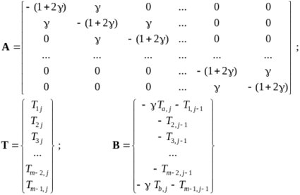 Система уравнений имеет специфическую структуру - она разреженная и имеет К диагоналей, где К определяется типом применяемого конечно-разностного отношения.
