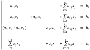 Из первого уравнения системы, положив значения неизвестных под знаком суммирования равными величинам неизвестных с предыдущей k-ой итерации