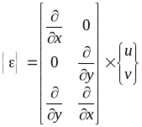 - соотношения Коши, связывающие перемещения и деформации, где [] - матрица дифференциального оператора (например для плоской задачи x=u/x, y=v/y, xy=u/y+v/x).