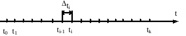 Получены точные уравнения. Если бы удалось эту систему уравнений решить, то получили бы точное решение. В общем случае система на интегрируется, поэтому необходимо прибегать к численному решению. Численное решение основано на отказе от исследования поведения функции фазовой переменной V на всей временной оси. Решение ищется дискретно в некоторых выбранных точках t0,…,ti,…tk, где i - номер шага, ti = ti - ti-1 - величина шага по времени (интервал)