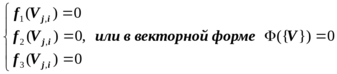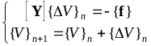Здесь {f}=Ф({V}n) – так называемый вектор невязок на текущей итерации.