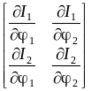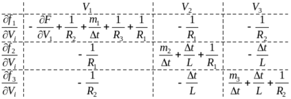 Продолжим рассмотрение нашего примера и попытаемся на этом частном случае сделать некоторые обобщения. Продифференцировав каждую строчку нашей системы уравнений по соответствующим фазовым переменным, получим следующую структуру матрицы Якоби
