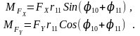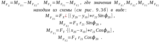 MFx , MFy – моменты реакций в шарнире относительно центра масс, их значения в полярной системе координат составляют: