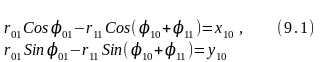 В эквивалентную схему, как это следует из уравнений 9.5 и 9.6, включены пять интеграторов для определения х10 ,у10 , х20 , у20 и φ10.
