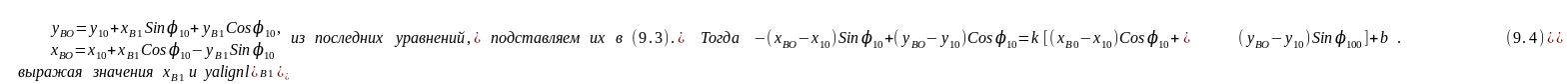 Выражение (9.4) записано через известные координаты центров масс звеньев (тел) 1 и 2, текущую координату точки В (xBO,yBO).