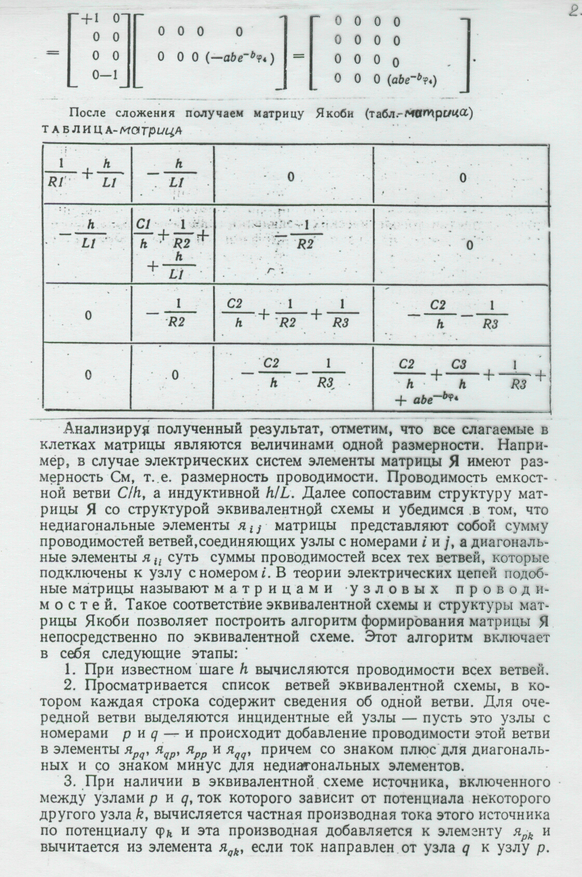 Якоби позволяет построить алгоритм формирования матрицы Якоби непосредственно из эквивалентной схемы.