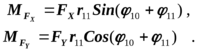 MFx , MFy – моменты реакций в шарнире относительно центра масс, их значения в полярной системе координат составляют: