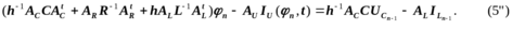 Решение уравнения (5”) дает значение φn на n–ом шаге, далее по формуле (1”) находят Un и по компонентным уравнениям вычисляем In. Расчеты на (n)-ном уровне ведут по известному (n-1) уровню (начало расчета при заданных начальных условиях (UCo и ILo.)). Из (5”) легко находится матрица коэффициентов (матрица Якоби), как “коэффициент” при фазовой переменной φ.
