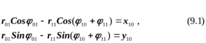 Выражение (9.4) записано через известные координаты центров масс звеньев (тел) 1 и 2, текущую координату точки В (xBO,yBO).