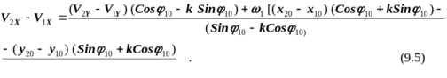 Уравнение вида (9.5) устанавливает связь для горизонтальных составляющих VХ1 и VX2 скорости движения тел 1 и 2; отражение этой связи на эквивалентной схеме показано в виде зависимого источника скорости (см рис.9.3а).