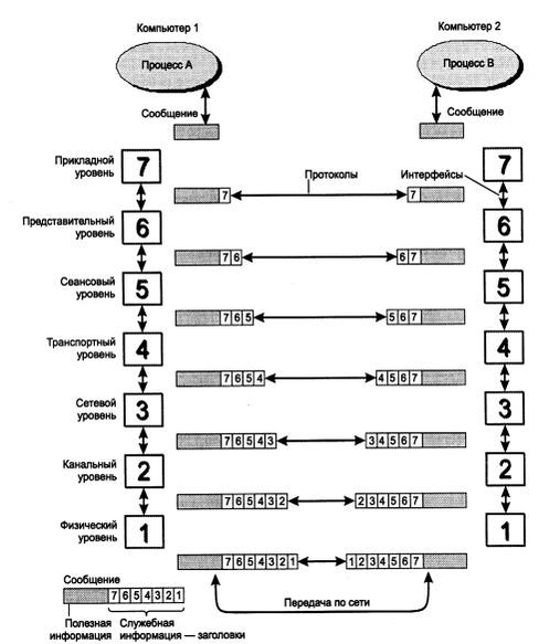 Средства каждого уровня должны отрабатывать, во-первых, свой собственный протокол, а во-вторых, интерфейсы с соседними уровнями.