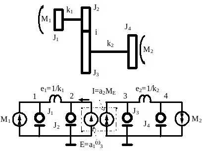 Для механической вращательной системы поступают аналогично, только роль масс, выполняют моменты инерции тел.