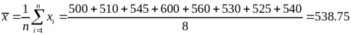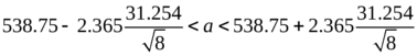Задача 5. При определении прочности стержня на разрыв испытывались 8 образцов. В результате испытаний получены следующие значения усилия разрыва (в кг): 500; 510; 545; 600; 560; 530; 525; 540. Требуется определить доверительные интервалы уровня γ=0,95 для среднего значения прочности и её среднего квадратичного отклонения, если закон распределения прочности нормальный.