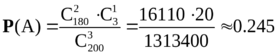 Задача 1. В барабане продавца билетов книжной лотереи 200 билетов, из них с выигрышами – 20. Покупатель берет “наудачу” 3 билета. Какова вероятность того, что один билет окажется выигрышным?