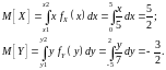 Случайные величины X и Y также распределены равномерно. Математические ожидания: