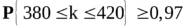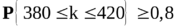 Из (4.5) находим оценку вероятности попадания k в интервал [380;420], т. е. [Mk-b;Mk+b]: