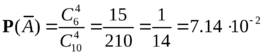 Задача 1. По каналу связи передается 10 сигналов (вероятность искажения каждого из них одинакова). Из-за помех 4 из переданных сигналов при приеме искажаются. Какова вероятность того, что из четырех любых принятых сигналов хотя бы 1 – искаженный?